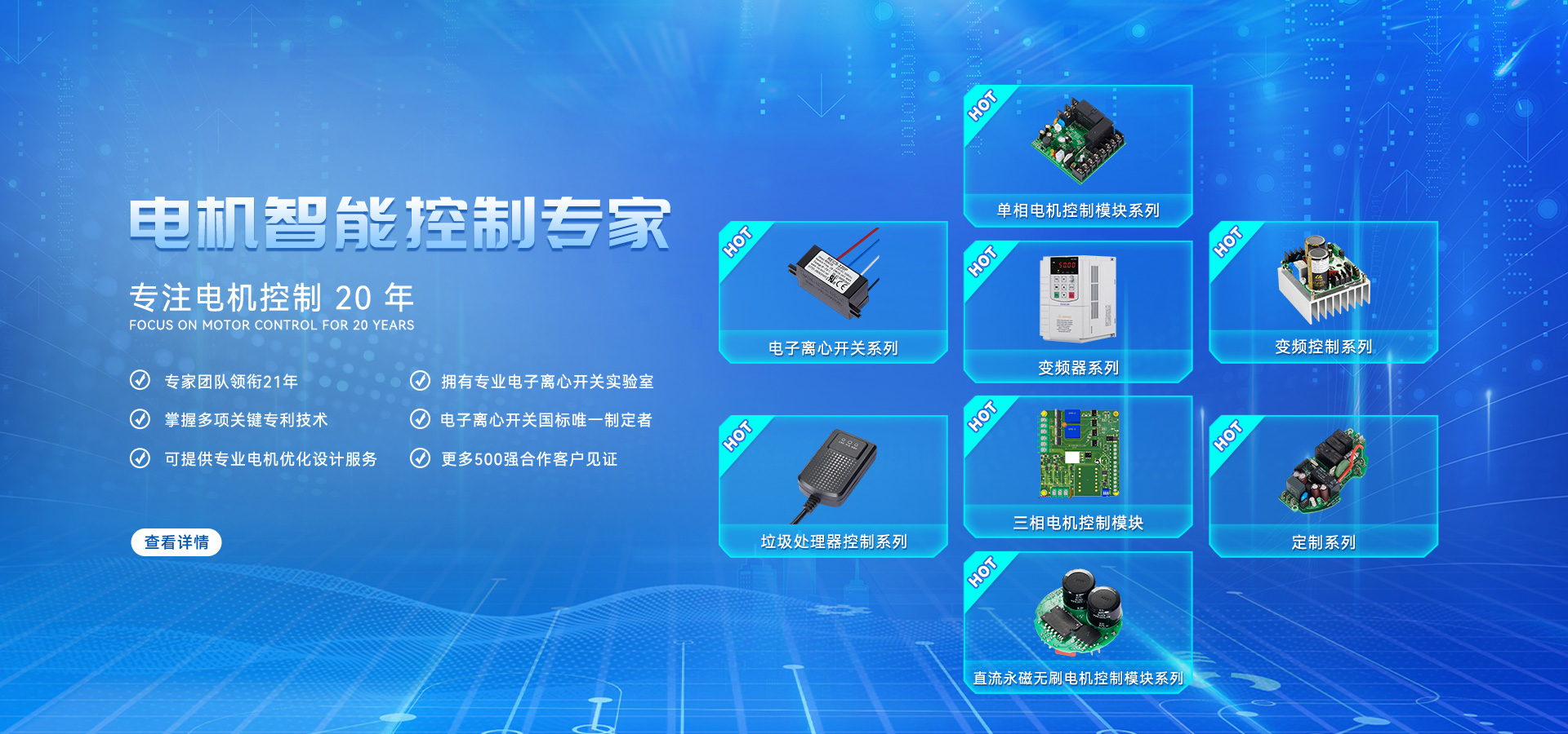 垃圾處理控制器首選深圳復興偉業——主營電子離心開關、變頻模塊系列、直流無刷驅動控制模塊系列、三相電機控制系列、單相電機控制模塊系列、客戶定制系列等,產品覆蓋全球。服務熱線:0755-26063505